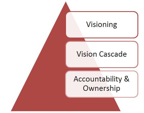 Visioning is a technique that is used to support the leadership team in an organisation develop a shared goal or picture of the future. It enables a movement forward together to achieve the shared goal.